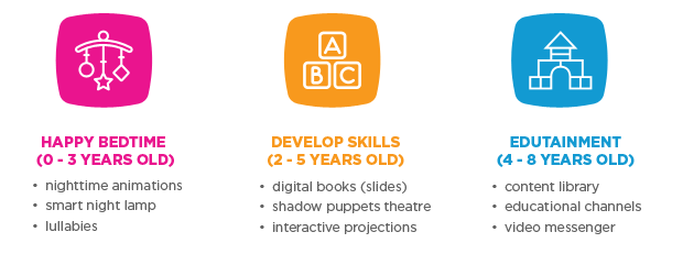 CINEMOOD is for big kids too! Parents will also have the option of watching their own content with CINEMOOD via a USB or WiFi. Your social accounts (Facebook, Instagram, Youtube) will integrated into CINEMOOD, so you can use CINEMOOD to access your social feeds directly to look at family photo albums and your private videos. The most surprising part of CINEMOOD is that it’s completely unlike any book or screen, or any other projector. Due to its incredible portability, it immerses you in a storytelling environment that can be projected onto any surface, like a ceiling, hotel room wall or even the side of a house for outdoor movie night.