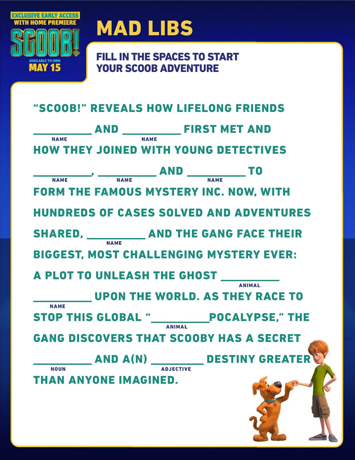 Starting this Friday, May 15th, “SCOOB!” will be available for a 48-hour rental via Premium Video On Demand for $19.99, or premium digital ownership for $24.99 (prices listed SRP). The title will be available on participating digital platforms. For more details, visit https://www.watchscoob.com.