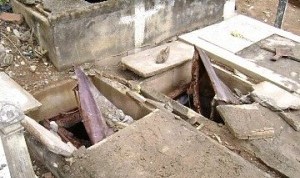 I headed to the cemetery in July in hopes of seeing my father’s final resting place and I could not find it. I was so sad and spent about 20-30 minutes walking to almost every area of that place to see if we could find him to no avail. I could CLEARLY remember 11 year old me looking at ALL of my surroundings and remembering the high walls, but I just couldn’t put my finger on the location. I found a lot of broken tombs, shattered graves, and even more frightening… the head of a Cadaver through the hole of a tomb. I left that cemetery broken hearted, sad, and a bit spooked out.