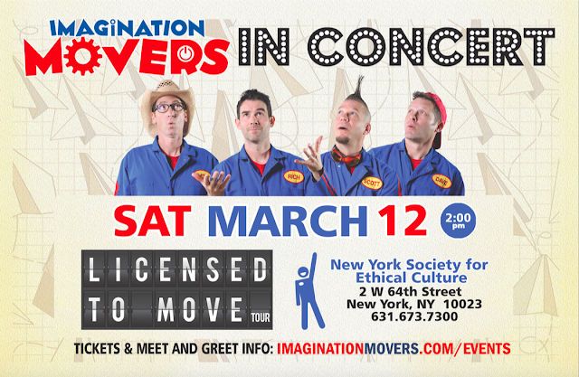 Add some rock n’ roll excitement and entertainment to your family’s life with the Imagination Movers’ 2016“Licensed to Move” Tour. That’s right! Imagination Movers are making their way to the Big Apple this weekend and we couldn’t be more Excited. So excited that we’re giving away a Digital download of Imagination Mover’s latest CD/DVD and an autographed Movers photo to each of my 5 Winners! If you don’t know them, let me explain…