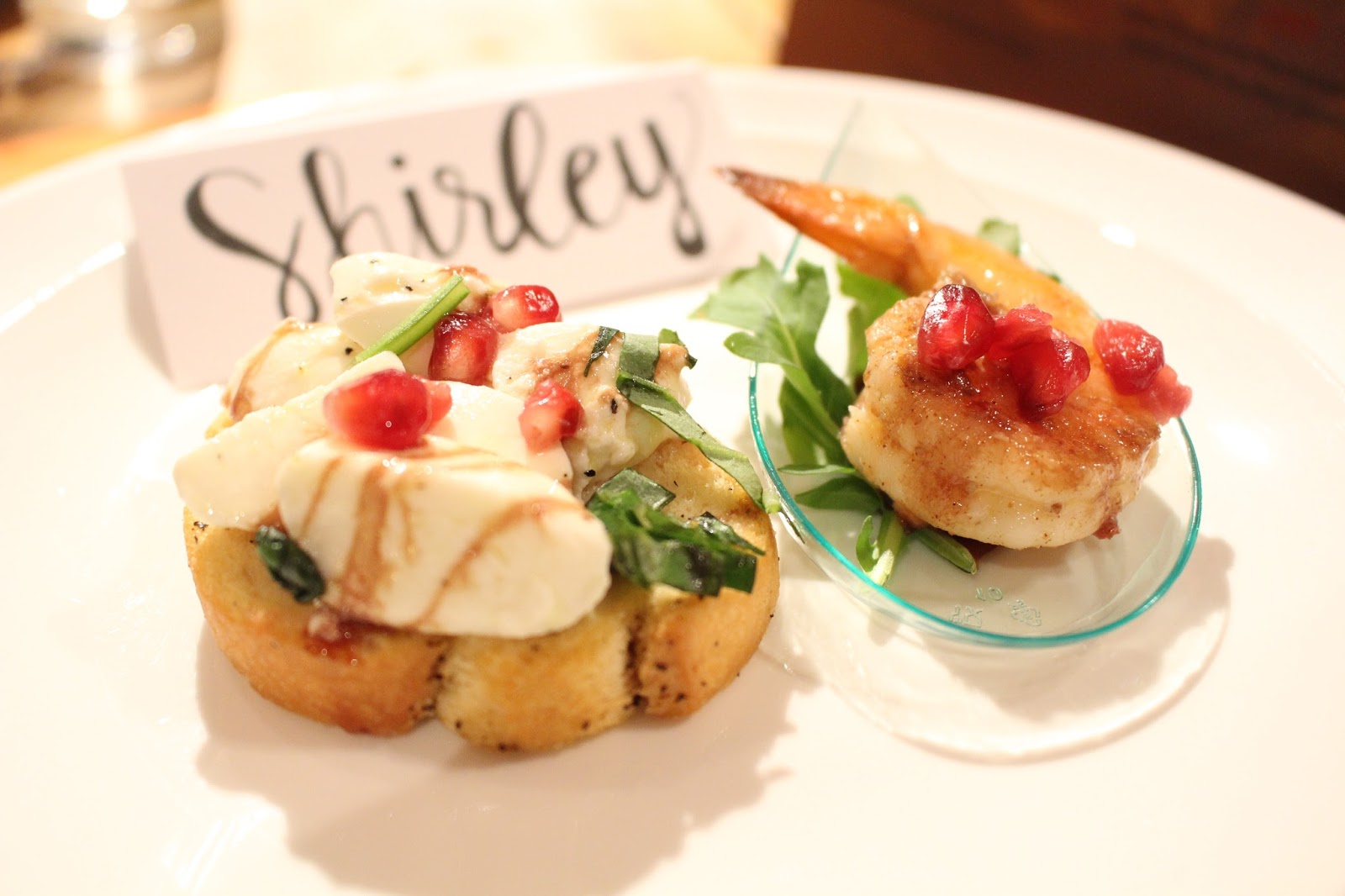 We were invited to celebrate the pomegranate season with POM Wonderful. We got ready for a fun hands-on cooking experience and a family-style meal with a few of our favorite blogger babes! As soon as we walked in, we were treated to delicious appetizers such as Moroccan Shrimp with POM POMs and Fresh Mozzarella, Pomegranate and Basil Bruschetta Cedric Vongerichten. Momtrends and POM Wonderful sure know how to throw a fun dinner party…