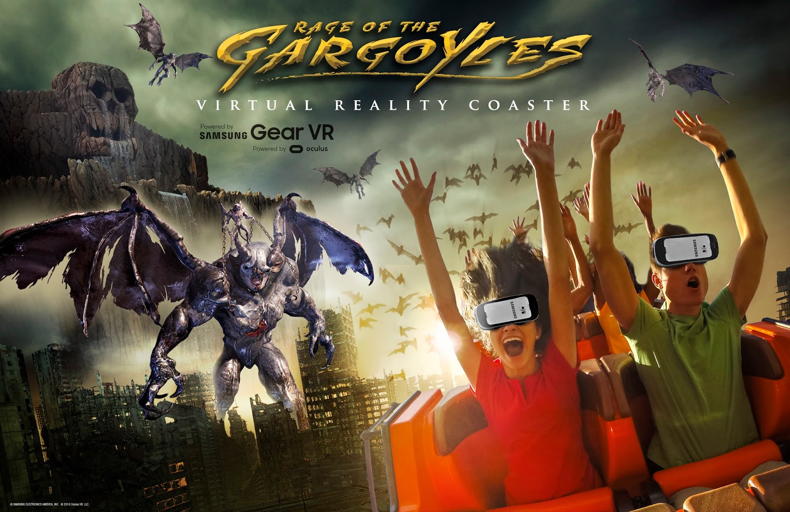 At Six Flags Great Adventure, the world’s largest theme park, riders will be able to use the Samsung Gear VR powered by Oculus headsets to battle demonic creatures in Rage of the Gargoyles, a fully-integrated Virtual Reality (VR) coaster experience! This highly-anticipated, totally immersive adventure will debut on Skull Mountain, the park’s indoor, in-the-dark coaster, available exclusively to Season Pass holders, active Members, haunted maze pass purchasers and owners of the Samsung Galaxy S7, Galaxy S7 edge and Galaxy Note7 during Fright Fest beginning September 24…