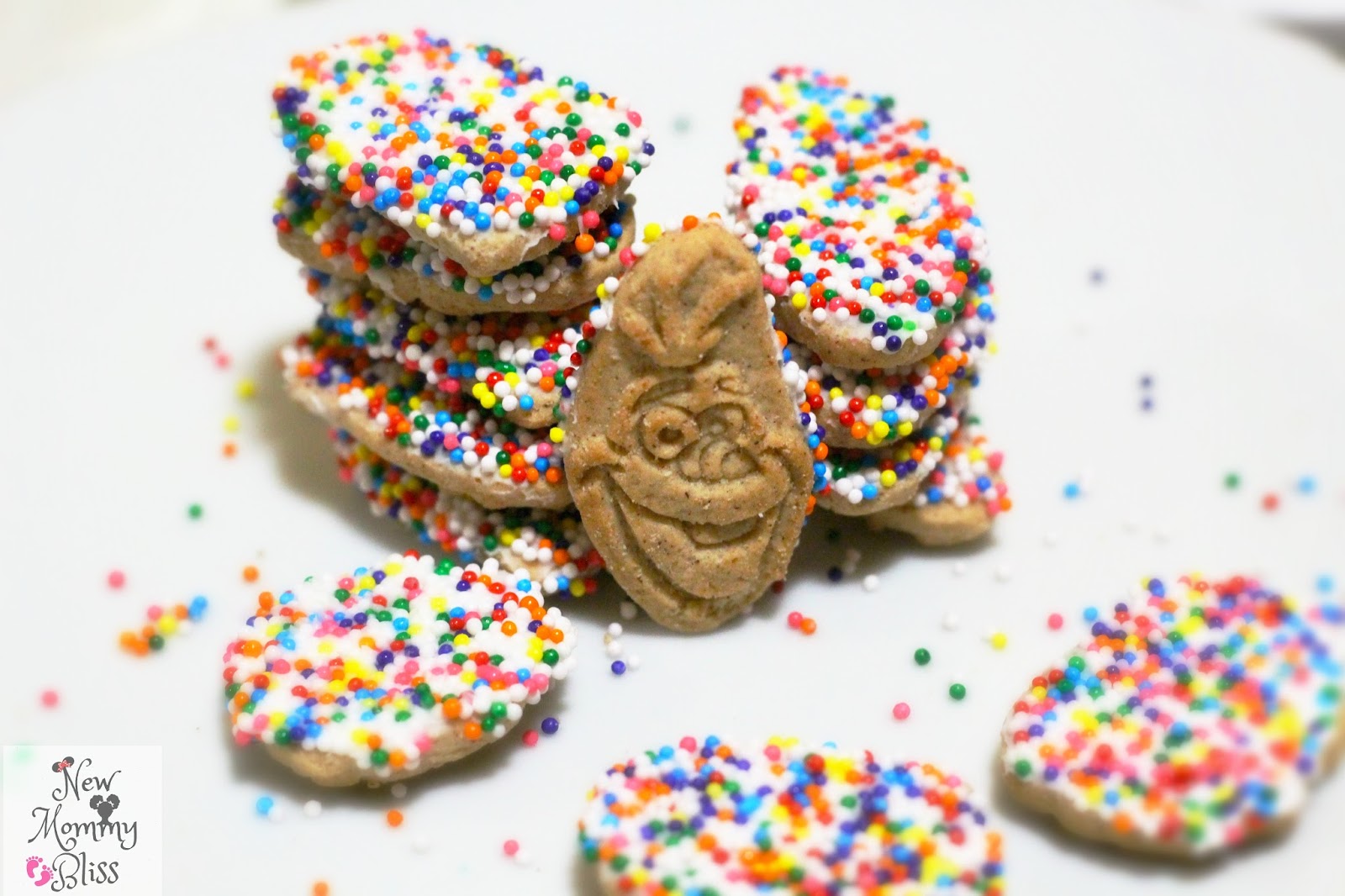 2) Press the cookie (Frosting side down) into the Nonpareils and let rest (Sprinkle Side Up)